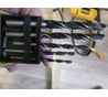 Не сразу разобрался с упаковкой. Для тех, кто будет испытывать трудности - надо отогнуть плашку с дыркой под крючок - на ней стопоры. Некоторые сверла не хотят вылазить самостоятельно, приходится снимать крышку полностью или частично отгибать. Словом, футляр так себе. Некоторые сверла с дефектом.