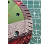 Указанные в описании размеры, в целом, соответствуют заявленным данным. Толщина рабочей части колеблется в пределах 1.7-1.8 мм.Это объясняется тем, что в составе материала в значительном количестве присутствует алмазная крошка. Сам диск - это сложная по конструкции и обработке деталь. Одни фигурные завитки, которые разделяют 14 сегментов, чего стоят... Да, это немного уменьшает ресурс, зато улучшает охлаждение и гибкость самого диска.