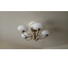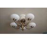 Плафоны из пластика обтянуты тканью. Люстра даёт приятное освещение вниз. Несмотря на большие размеры в комнате 20м2 смотрится хорошо.
