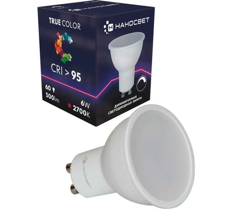 хорошая, мощная 10-ти ватная софитная лампа с цоколем GU-10 плюс небольшой угол рссеивания(60 градусов),ну и цветопередача соответствует заявленному.