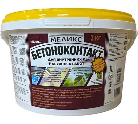 Покупал для дачи , делал ремонт, а 2 стены были покрашены масляной краской, попробовал сбить и понял что потеряю кучу времени. Решил взять бетоноконтакт, но не бренд, а нового производителя который относительно недавно на рынке , такие в начале пути работают на имя и производят достойную продукцию. Выбор пал на т.м "Меликс" и не прогадал, после высыхания попробовал отколупать получилось ещё хуже чем с краской, та хоть как то отлетала, этот бетонокотакт почти никак. Так что если кто думает какой взять, берите не думайте вещь классная.