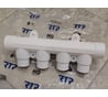 Длина: 214 мм Между отводами: 46 мм Монтажные отверстия: прямоугольник 92 x 46 мм Цена ноябрь 2025: 648 руб Варится хорошо, не прилипает. Шаровые краны смазаны. Благодаря им коллектор универсальный, можно на вход и на выход. Ручки кранов довольно крепкие, и приятно что в комплекте сразу два цвета. Брал как временное решение для ХВС на период ремонта и замены вводного узла.