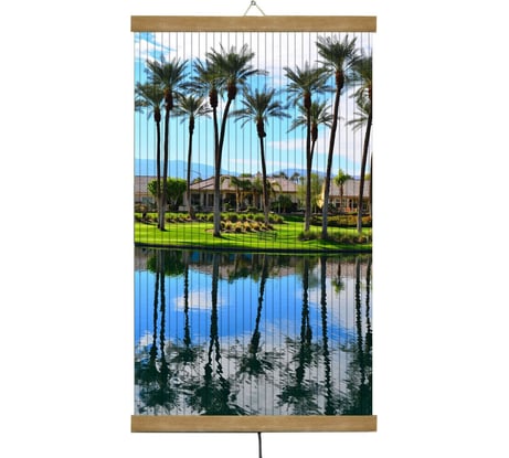 Покупался в подарок для обогрева комнаты на даче. Обогреватель смотрится как картина, оказался чуть больше, чем думала, но это и хорошо