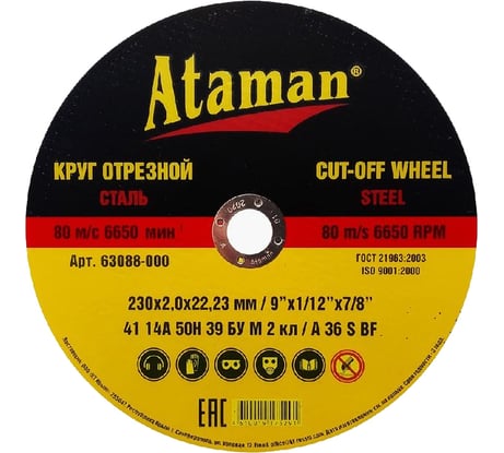В понедельник получил круги Атаман 1.2. Вчера попробовал. Впечатления следующие. В начале года покупал круги одной известной фирмы, которая выпускает хороший электроинструмент по 54 руб., тоже 1.2. Тут появилась новинка круги Атаман, решил попробовать. Так вот, на тоже количество резов арматуры 12 мм тех дисков ушло 6 шт., а Атаман ушло 3 шт. Вывод можно сделать, что Атаман дешевле и на большее количество резов хватает. И плюс заметил что эти круги режут легче, и не скользят
