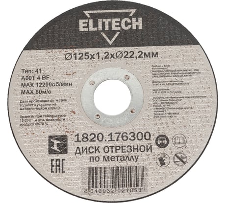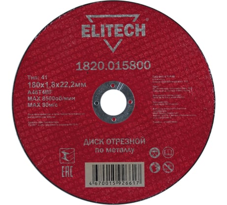 Купил диск отрезной Elitech 1820.015000 (125×22.2×1.8 мм) для работы по металлу. Диск оказался легким и тонким — хорошо режет листовую сталь и профиль без заметного задирания кромки. Ресурс при обычной нагрузке средний: на бытовых задачах выдерживает несколько погружений, для интенсивной постоянной резки лучше иметь запас. Из плюсов — чистый ровный рез и невысокая вибрация, подходит для угловых шлифмашин с посадочным местом 22.2 мм. Из минусов — при агрессивной подаче нагревается быстрее, поэтому рекомендую делать перерывы и использовать защитный щиток. В целом достойный вариант за свою цену для домашнего и полупрофессионального использования.