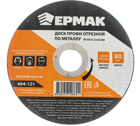 Отзыв Диск отрезной абразивный по металлу ЕРМАК Профи 125х1.6х22.2 мм 664-122