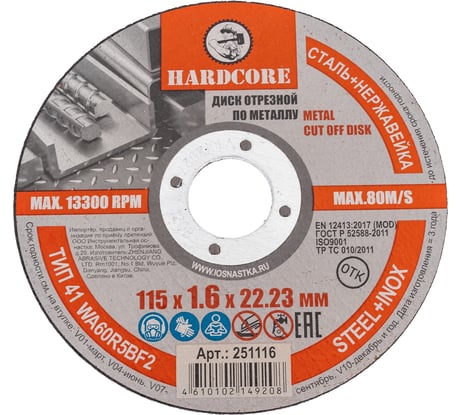 Отличный круг,пилю рельсы-как масло!Биения нету,искра минимальная,долго расходуется,жалко что дороговат-получается два зубра или один этот.