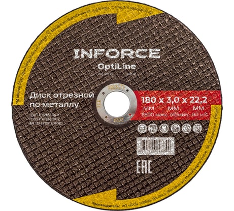 Диск отрезной по металлу OptiLine (125x1.0x22.2 мм) Inforce INB12510 купил по акции за 46 рублей во Всеинструменты.ру (3 шт.) Хватило на 4 поперечных реза профильной трубы 80×80×3 мм. Фото до и после резки прилагаю