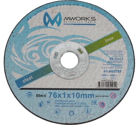 Отзыв Диск отрезной универсальный MWORKS Cutting disc universal metal / Inox 76x1x10 мм MW7076110