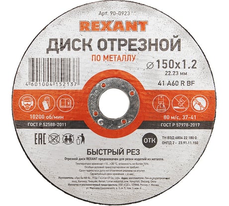 Отзыв об отрезном диске REXANT 150х1.2х22.23 мм 90-0923
