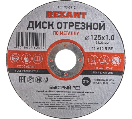 Отзыв об отрезном диске REXANT 125х1.0х22.23 мм 90-0912
