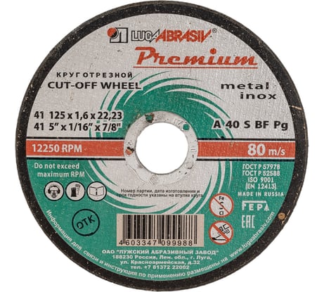 Мало чем уступают дискам CUTOP. На первый взгляд это аналогичные диски Луга (Луга 4603347221310), только ценой побольше. Но на практике это совсем разные диски. Этот диск (Луга 73680) гораздо лучше показал себя в работе. По фото и внешнему виду они похожи 1 в 1. Складывается впечатление, что один диск - завод, другой - кооператив.