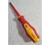 Общая длина изделия: 180мм. Диаметр стержня изделия составляет 4.5мм, при этом он изолирован специальным покрытием. Отвертка диэлектрическая и потому в первую очередь предназначена для работ под напряжением (до 1000В). Там же присутствует маркировка: "IEC 60900 / 1000V 22". Наконечник отвертки намагничен, что создает удобства при работе с мелкими метизами, а также их поиска.