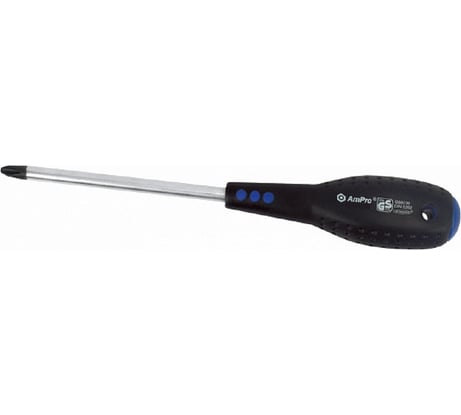 Длинная массивная отвертка с удобной прорезиненной маслостойкой рукояткой. Шлицы качественные, наконечник магнитный, сталь CrMo.