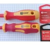 Качество отвертки я бы сказал очень хорошее. Ручка в руке сидит удобно даже в жаркую погоду когда руки потные не скользит в руках. В ручке есть отверстие, чтобы можно было повесить ее. За все время частого использования шлицы в отличном состоянии: не стираются и крепеж входят плотно, а при одевании магнита на стержень (винты и саморезы) держатся идеально. Отвертка диэлектрическая так что для электрики самое то. Длинны стержня (10 сантиметров) в основном для всего хватает. Конечно отвертка не дешевая но за качество приходится платить(хотя при нынешних ценах это наверное и нормальная цена). Так что отвертка меня во всем устраивает.