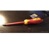 удобная для средней ладони ручка, ребристая резина и пластик без литников, магнитное жало, изоляция на 1кВ, длина жала-13мм, отверстие в ручке для увеличения крутящего момента (можно другой отверткой помогать), общий размер на сайте указан неверный-по факту 21см