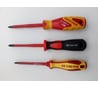 Проверил на автомате ABB S201, у которого винт сидит глубоко - всё нормально, оголенная часть отвёртки по высоте почти точно под пластик. Изоляция имеет диаметр 7.9 мм и немного заходит в автомат, у которого диаметр отверстия 8.1 мм. Словно специально подбирали. Т.е. для автоматов ABB не потребуется более дорогая отвёртка с тонкой изоляцией.
