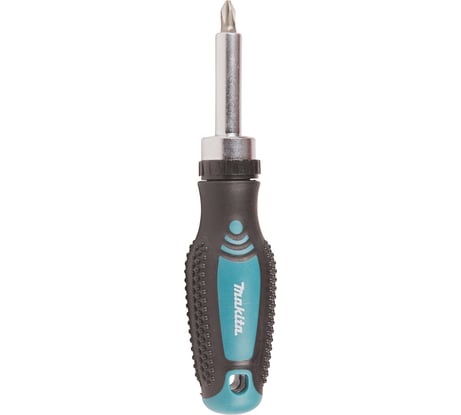 Инструмент в своё время заинтересовал, как и в принципе линейка ручного инструмента компании Makita. Отвёртка поставляется в блистере. Несомненно плюс. При хранении и транспортировке с инструментом ничего не случится. Чёрным идёт обрезиненная часть, бирюзовым пластик. На обрезиненной части в четырёх местах пупырышки. Держать инструмент и работать будет удобно. Длина отвёртки 155мм, вес - 132г. Эргономика всегда вопрос спорный. У меня рука небольшая, и инструмент в руку лёг хорошо. Для большой руки, возможно, будет неудобно. На корпусе предусмотрено отверстие для подвешивания. Через него также можно продеть страховочный трос для работы, например, на высоте. Логотип Makita здесь просто нанесён краской. Сотрётся данная надпись быстро. Лучше всё-таки сделать логотип под литьём и потом уже покрасить. А в этом случае инструмент просто станет безымянным. В общем, неудачное решение. Далее идёт пластиковая муфта переключения реверса. Стрелками на корпусе и муфте показано направление, в котором будет срабатывать трещотка. Муфта установлена чуть криво, и показывает режим неправильно. То есть вправо она больше не идёт, трещотка срабатывает при вращении вправо. А блокируется трещотка, когда центральное положение на муфте совпадает с со стрелкой налево на корпусе отвёртки. И, соответственно, стрелка направо на муфте совпадает со стрелкой налево, и трещотка срабатывает на вращении влево. Другими словами, это брак. Проще теперь не обращать внимания на обозначения на корпусе. Только путают. Придётся привыкать к переключению реверса чисто на муфте. Вправо до упора для откручивания, влево для закручивания. Соответственно, промежуточное положение для блокировки трещотки. Ничего сложного. А так момент, естественно, неприятный. Сам трещоточный механизм по крайней мере по звуку из металла. Трещотка здесь на 72 зуба, а это даёт угол возврата в 5 градусов. Таким образом, данной отвёрткой будет удобно работать в труднодоступных местах, где есть возможность выполнять вращение с минимальной амплитудой. В комплекте также идёт бита. Это 25мм бита под шлиц PH2. Это бита из линейки STANDARD. Чего-то сверхъестественного от неё ждать не стОит. Хорошо, что есть. Но само собой нужно иметь качественный набор бит. В ином случае, комфортной работы не будет. Битодержатель под стандартную оснастку 1/4 дюйма. Фиксация осуществляется при помощи магнита, который находится в битодержател. Биты фиксируются слабовато. Также в самой посадке есть люфт. Во всех битодержателях такого плана есть и будет люфт, и это абсолютно нормально. Работе это не мешает, просто здесь он уже довольно ощутимый. Сам магнит реально слабоват. А это в конечном итоге будет скорее всего приводить к тому, что бита останется в профиле крепежа. Крутить саморезы от руки то ещё занятие. Если объём работ небольшой, то нормально. Инструмент предназначен скорее для работы с винтами, а также болтами и гайками максимум м8. В заключении хотелось бы сказать, что инструмент данного плана имеет место быть в наборе инструментов как профессионала, так и просто, думаю, что стОит иметь дома. Ситуации бывают разные, и иногда действительно сложно обойтись без такого инструмента. А насчёт именно этой отвёртки, больше недостатков, чем достоинств. Большой люфт в битодержателе, откровенно слабый магнит, невнятный и криво расположенный перек