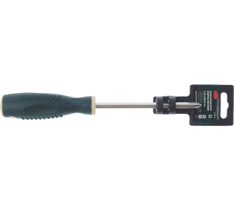 Удобная прорезиненная рукоятка. Стержень ровный. Шлиц хорошо подходит к крепежу.