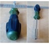 - стержень: заметный люфт бит, хоть и в пределах разумного. На практике заметных неудобств не доставляет (использовал биты 25 и 30мм) - рукоятка: обрезинена лишь на 2/3 длины. Часть рукоятки черного цвета - обрезинивание, зеленого - твердый, довольно скользкий пластик. Т.е. упор для пальцев есть, но обрезинивание этой части отсутствует.