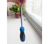 Заказ № 2207-243555-65487 от 18.07.2022 Хотелось бы сразу отметить цену за эту отвертку. Она стоит своих денег. Рукоятка выполнена из твердого пластика - голубая часть и твердой резины (возможно что-то похожее на резину) - чёрная часть. Приятная на ощупь, в руке не скользит. Ближе к стержню имеется небольшое углубление для пальца. В самом углублении нанесена накатка в виде точек. В руке лежит удобно. Хотя для меня было бы комфортней если бы она была немного длиннее, чтобы мизинец лежал на рукоятке, а не за её пределами. Стержень прочный. Если применять по назначению, маловероятно что он погнется. В самом битодержателе расположен магнит. Биту удерживает очень хорошо (хорошо магнитится и хорошо изымается из держателя). К сожалению, магнитная сила не передается через биту на саморез. Это, конечно, минус, но в то же время плюс. Есть отвертка другого производителя с очень сильным магнитом. Саморез примагничивается к бите, но саму биту при этом извлечь нереально трудно из-за силы магнита. Поэтому каждый выбирает то преимущество, которое ему нужно.В моем случае проще подержать саморез руками и максимально быстро менять биты. Есть небольшой люфт биты в держателе. Но совсем маленький. Работе не помешает. Достойная отвертка подобного типа.