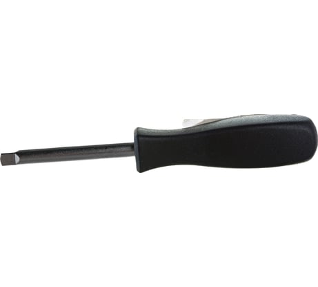 Ручка прокручивается на металлической части. Нагрузка при этом не велика: насадка шестигранник на 4 или 5, закручивается от руки. Биты фиксируются не чётко. Тыльник металлической части утоплен в ручку, ударить не получится.
