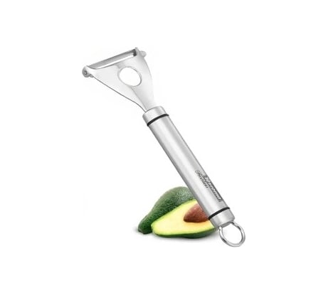 Одна из очень немногих овощечисток, которой действительно удобно чистить картошку. Покупал похожую по форм-фактору Гипфель, вообще невозможно пользоваться, несмотря на немалую цену. Чистилки с поперечным лезвием а-ля бритва удобны только для овощей правильной формы, а не для картошки. Товарищ пару лет назад подарил Тескому предыдущей серии Президент - совсем другое дело. Чистить картоху стало удобно и быстро. Понадобилась вторая - купил эту как заменитель. В общем и целом - эквивалентна, см. один недостаток.