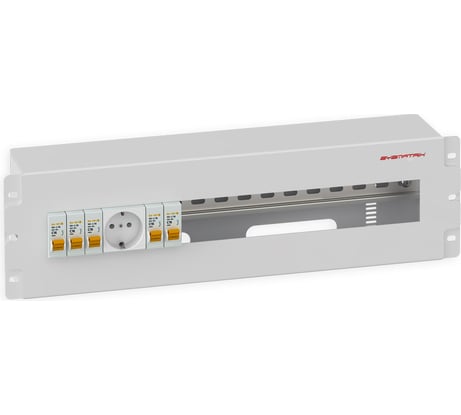Электропанель в ТКШ 19". Металлический серый корпус, крышка заземлена на корпус проводом заземления.