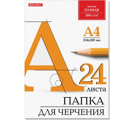 Отзыв Папка для черчения BRAUBERG А4, 210х297 мм, 24 листа, 200 г/м2, без рамки, ватман КБФ 129255