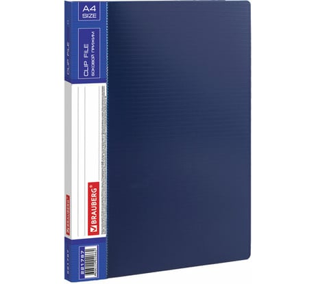 Отзыв Папка BRAUBERG Contract с боковым металлическим прижимом и внутренним карманом, синяя, до 100 листов 221787