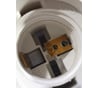 Патрон очень удобной конструкции. Изготовлен аккуратно из качественного пластика. Центральный контакт патрона упругий и хорошо пржимается к центральному контакту цоколя лампы. Боковой контакт также плотно прилегает к гильзе цоколя. Обе клеммы для присоединения провода к патрону выполнены заодно с контактами патрона. Эти быстрозажимные, пружинные клеммы - двойные. Это позволяет зажимать сразу по два провода, например, входящий и идущий к следующему патрону. Резьбы для лампы и на юбке патрона без дефектов.