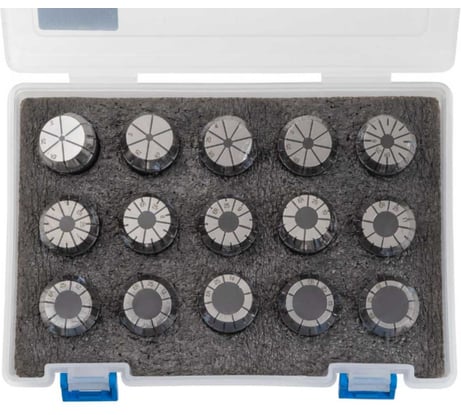Кейс не такой, как на фото- пластиковый, неудобный, вкладыш толстый, цанги из него не достать, отрезал половину толщины, чтобы не проваливались, маркировка на цангах разбросана- читать неудобно. Доставили на пару дней раньше обещанного