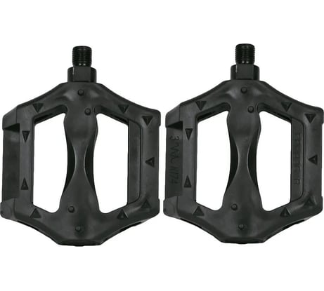 Моноблок из крепкого пластика, стальная ось. Подшипник скольжения. Противоскользящая поверхность педалей с рельефным рисунком для лучшего сцепления с обувью. Нет сильно выступающих частей на педалях.