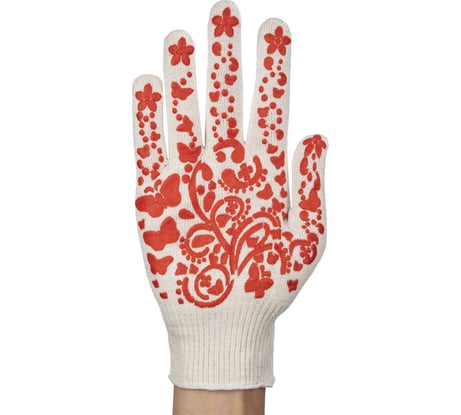 Отзыв Перчатки х/б с ПВХ покрытием ЛЭВ Цветы, ПВХ красный, синий, зеленый, 13 класс, 48 гр. 168065