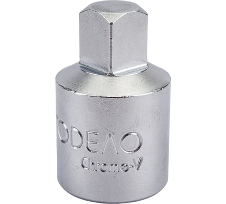 С одной стороны - квадрат под трещотку 1/4". С другой стороны - шестигранник под биту. Хорошо держит типовые биты.