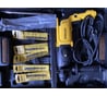Плотный, добротный кейс. Перф достаточно мощный для своих размеров. Длинный и толстый шнур. В комплекте патрон под сверло. Реверс. Блокировка курка. Регулировка оборотов