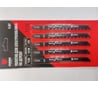 По внешнему виду и по фактам использования это все же HSS-пилки ( хромованадиевые, быстрорежущая сталь ). Поэтому достаточно стойкие к износу, не ломкие. Лучше не перегревать. Форма, размер зубьев, волнообразная разводка дают довольно чистый рез, мало сколов при аккуратной работе. Можно делать скругления ( хотя для этого больше подходят пилки T227D ), хорошо подойдут для врезки раковины в столешницу.