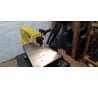 Изготовителям и сборщикам надо руки оторвать. Приводное колесо на двигателе ровное , не люфтит, не бьет. А вот верхнее кривое, есть небольшой овал и кривизна 3-5мм. Написал в поддержку может и заменят, пока жду. Регулировка натяжки сделана неправильно. Пришлось переделать . Подрезал пружину и установил под рычаг. Так не будет рвать полотно. На рычаге два отверстия для пальца. Благодаря этому можно пользоваться двумя размерами полотен. Крепление стола : Угловая пластина через которую крепится стол была криво прикручена к самому столу. (были подложены шайбы. зачем???? х.з.) При установке стола между корпусом пилы и пластиной стола проложил тонкую алюминиевую пластинку и под прижимную пластину тоже. Стол стал легко и плавно наклоняться. В место рычага для смены полотна использую струбцину. Притягиваю колесо вниз к корпусу и меняю полотно. Прогнал по 12 шт. заготовок толщиной 3мм и 20мм. Рез ровный, размер выдерживает по всей длине. Параллельный упор ровный. Транспортир регулируется по выносу упора. Вообщем нормальная такая пика. Небольшие биения полотна из-за кривизны верхнего колеса особо не мешают, но хочется от этого избавиться. Ручки надо приложить, работать из "коробки" нельзя.