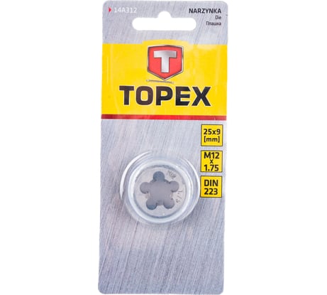 Плашка размер 25x9 мм, размер резьбы M10 Шаг резьбы 1.5 мм.Плашка упакована в пластиковый контейнер с промаркированным размером.