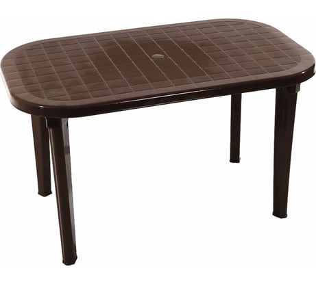 Стол подходит для использования в саду или во дворе. Не боится дождя, так как из пластика. Приходит от производителя в разобранном виде. Для сборки нужно вставить 4 ножки в подготовленные отверстия снизу в столешнице. В центре стола есть отверстие, чтобы можно было установить зонт от солнца. По умолчанию оно закрыто небольшой крышечкой.