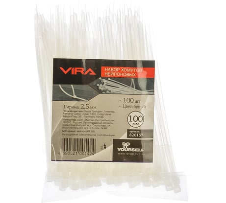 Отзыв о наборе пластиковых хомутов VIRA 100мм белых 100 шт 820137