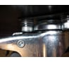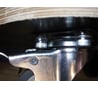 Каждое колесо крепится четырьмя Винтами М6x16, а чтобы торцевая часть винта не торчала с рабочей стороны тележки - перед завинчиванием каждого винта ПРОЛОЖИЛИ ТРИ ШАЙБЫ (см. фото 1)!!! Из-за этой идиотской конструкции за шляпки винтов задевает фиксирующий колесо механизм при вращении колёсной вилки вокруг своей оси (см. фото 2-3)