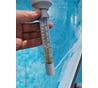 Чтобы узнать температуру, его надо вынуть, но это совершенно не мешает. плавает на веревочке около края бассейна.