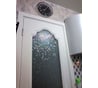Дополняю сразу после поклейки кухонной двери. На чистое стекло нанесла мыльную воду пульверизатором. Постепенно снимая защитную плёнку, прикладывала к стеклу, сразу разглаживая ракелем, чтобы выгнать воду и воздух (на YouTube полно роликов по работе со статической плёнкой).
