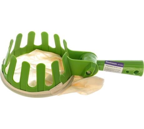 Изделие требует доработки. Лично я с помощью контровочной проволоки сделал несколько отверстий вдоль верхнего шва мешочка, продел через эти отверстия эту проволоку, потом надел это всё на плодосборник снизу, проволоку затянул-скрутил саму на себя с помощью плоскогубцев. После этого получалось вмещать яблок по 7, больше не рисковал - палка-штанга гнётся. В целом - своих денег стоит.
