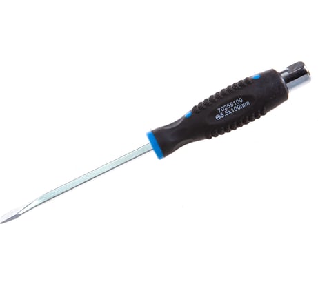 Отвёртка имеет качественное хромовое покрытие. В задней части рукоятки имеется металлический хвостовик диаметром 15 мм. На хвостовике есть две фаски под ключ на 14 мм. Рабочий стержень - четырёхгранник 5 мм. Общая длина отвёртки 210 мм. Толщина рукоятки 26 мм.
