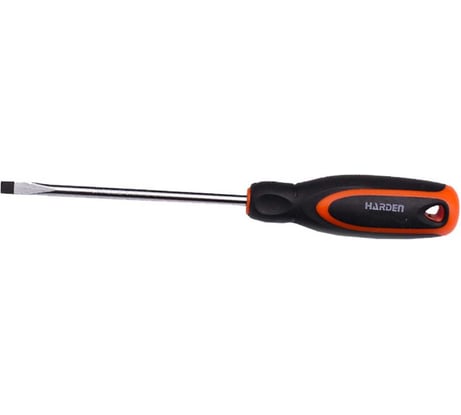Отвертка шлицевая профи Harden серии Джет CRV 6х300 мм., показала проф пригодность при обслуживании теплотехнического оборудования. Отвёртка ровная без изгибов и что хочется отметить её прочность.