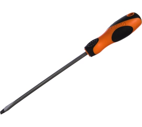 Хорошая отвертка. Металл на конце плотный, средние нагрузки держит. Ручка удобная, руке не липнет.