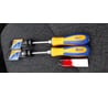 Отвёртка отличная , покупалась взамен ноунемовской потерянной такого же плана - здоровая ,плоская , ударная , в основном для работы в качестве узкого долота по всему чему попало . Тюкаю по ней уже 3-й месяц - жало ни капли не стёрлось , и даже продолжает работать в режиме отвёртки - перекрыть кран на узле нижнего подключения батареи или подкрутить длинный винт на сифоне ванной .
