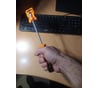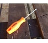 Стержень и рабочая часть отвертки изготовлены из прочного материала 40Cr (конструкционной стали) и оснащены магнитным наконечником. Длина стержня 150 мм. Удобная эргономичная пластиковая рукоятка в оранжевом цвете даёт возможность работать без прокручивания инструмента в руке и обеспечивает качественную работу инструмента.